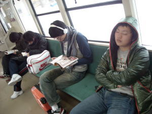 新幹線と違い、いろんな人が降りては、乗り、たくさんの風景と共に、たくさんの人に会いました。