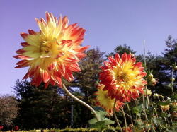 すごーく、綺麗でしたよ。満開のダリアと青い空のもと、のんびりと散歩してきました。