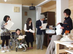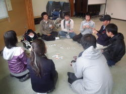 午後には、サポステのRちゃんが無事職業訓練基金が終了し、ヘルパーの資格が取れ、(がんばったね!!)就職の面接も終え、一段落したということで教室に友人のYちゃんと遊びに来てくれました。お祝い気分でわいわいとジュースを飲みながら、「良かったね」と話をしていたその時、携帯の大きな警報のアラーム音に驚いたと同時に、今までに感じたことの無い大きな長い揺れが、教室を襲いました。慌てて、固まり机の下に避難しましたが、水槽の水がこぼれ、いつ物が倒れてくるのではと恐ろしい気持ちでいっぱいでした。幸い、誰も怪我もなく、物も壊れずにすみ、早めに教室を閉めて生徒達を送り届けました。