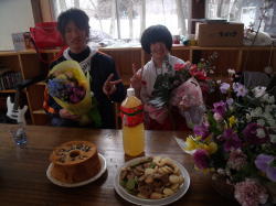 中学を卒業したSちゃんのお祝いも兼ねて花束を二人にプレゼントしました(*^_^*)おめでとう!