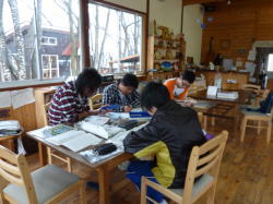 第三土曜日は野外教室で毎回カフェレストランをお休みさせていただいていたのですが、これから並行してやっていこうということで!先週初めて両方試みてみました☆が、、、大雪と宣伝不足で(T_T)静か~なレストランでした、、、。野外教室のドパスの絵描き帰りに子ども達がパスタを食べに来てくれて(*^_^*)いっきに賑やかになりましたが(^u^)