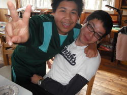 20日には前回のブログで予告した卒業生R君の第二回お別れ会がありました!引越したばかりでバタバタとしていて特にスタッフが企画したわけではなく、スタッフがミーティングをいている間に生徒達の間でいつの間にか計画されていて、日にちや贈る歌、練習日などを皆で話し合って決めている一生懸命な姿を見て、子ども達が自主的に卒業する仲間の為にやりとりをすることが今までには見られなかった光景だったこともあり、驚きとともに感動し、それだけ皆に慕われているR君の存在の大きさを改めて感じました。去年の春から生徒スタッフが急増し、それまでは個々でいることがほとんどだった生徒達が少しずつ友達になって、スクール以外でも遊んだり携帯でやりとりをし始め、お互い知らないうちに傷つけあったり、喧嘩をすることもあったと思うけれど、そうやってこの先長い人生の中で避けて通れない人との関わりを大切に知っていってほしいと思いました。兄貴と呼ばれ、リーダー的存在だった彼がいなくなり不安もあったし、しばらく恋しがる皆だったけど、新リーダーも誕生し!?また少しずつ前に向いて歩んでいってくれるはずです。