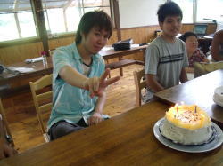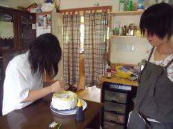 新学期が始まり、すぐにスタッフ尚ちゃんのバースデーがありました!まだまだキッチン道具もお菓子道具も揃ってない中なんとかラーメンと新キッチンの業務用!?とっても温度調整が難しそうな(>_<)立派なオーブンでケーキを焼きました!初挑戦で上手に出来るか不安だったのと3月震災が起きて、Y君とA君とSちゃんのバースデー会が出来なかったので(+_+)一緒にお祝いをしようということで!白石先生がナガオカ屋さんでケーキを買ってきてくれ!なんと3つケーキの豪華パーティー(^O^)/皆おめでとう❤