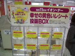 毎月11日はサティさん(現在イオンさんに)のご好意で黄色いレシートキャンペーンに登録団体として参加させていただいていて、今回3月の年度末、またイオンさんになって初めてのキャンペーンということで、新たな団体さんも加わり、これからももっともっと地域に根付いて、貢献できる団体としてイオンさん他団体さんと協力をして活動していけたらと思います。イオンさんには次年度も継続させていただき大変感謝です。お買いものに来て下さる、お客様の皆様にも、だんだんとイエローキャンペーンが浸透してきたように感じられ、声かけに応じていただけるようになってきた事が、スタッフ、生徒共にとても嬉しいです。